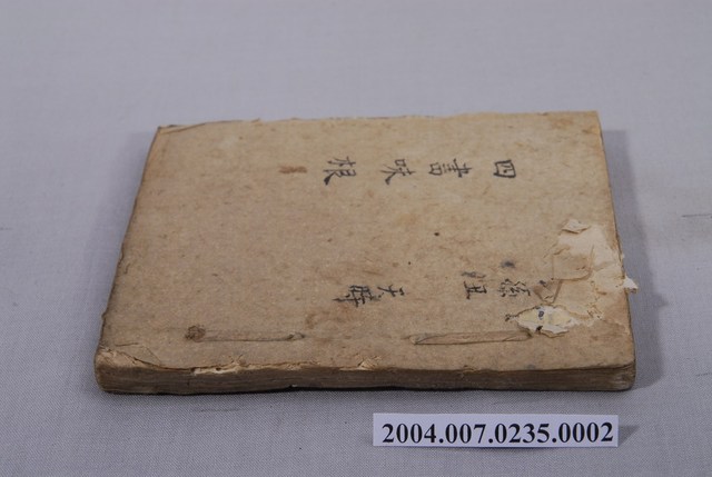 本件為《四書味根》公孫丑天時篇,為線裝書,封面由右而左直書「公孫丑天時」、「四書味根」等字,封面右上方有破損,封底也有破損及蟲蛀痕跡,保存狀況不良。