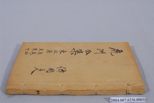 1.本件《鹿洲全集、東征集,自卷四至卷六》為線裝書,封面左側直書「鹿洲全集東征集自卷四至卷六」,右下方直書「憚園主人」,外觀呈現泛黃,背面有1處污漬及1處輕微破損,整體保存良好。
