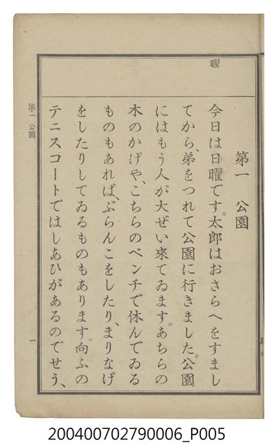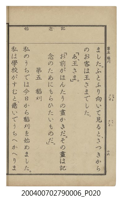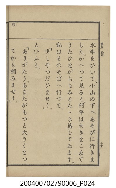 2004.007.0279.0005 臺灣總督府編纂《公學校用國語讀本第一種》卷五