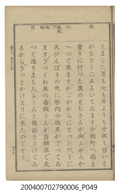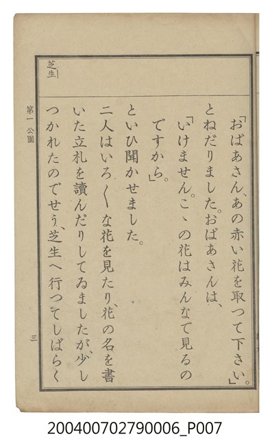 2004.007.0279.0003 臺灣總督府編纂《公學校用國語讀本第一種》卷三