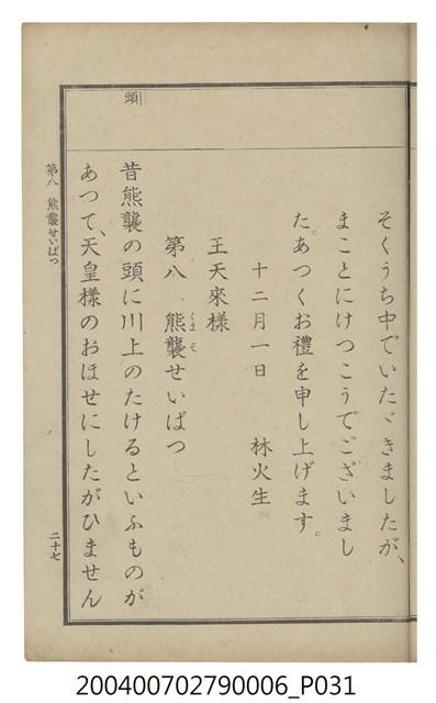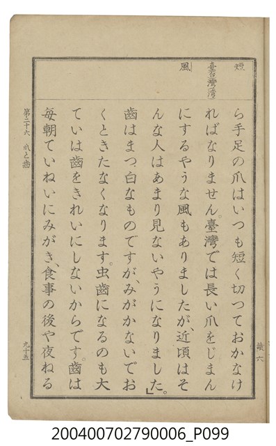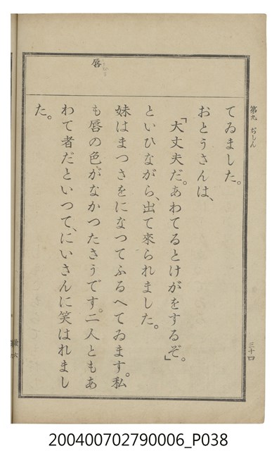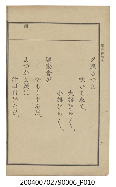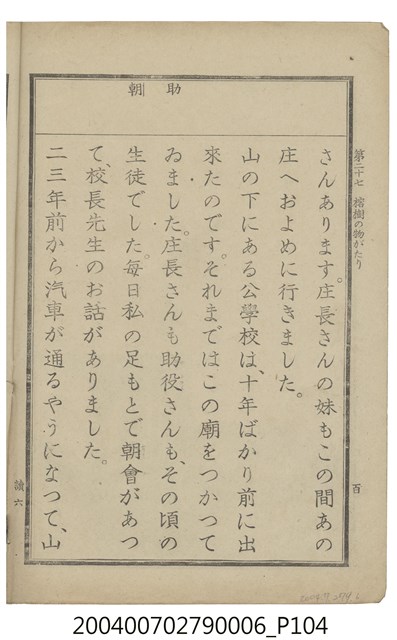 2004.007.0279.0006 臺灣總督府編纂《公學校用國語讀本第一種》卷六