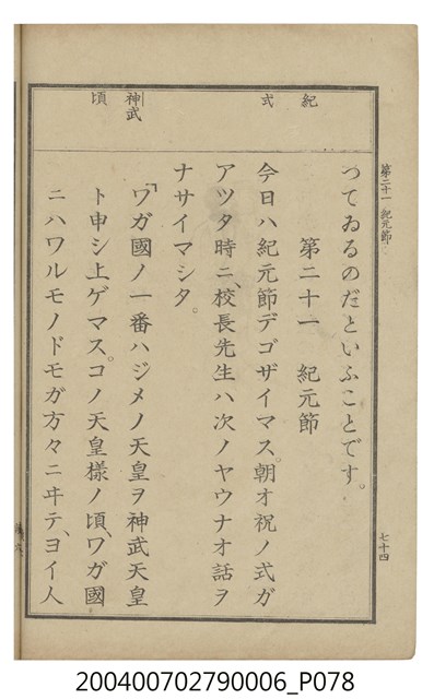 2004.007.0279.0004 臺灣總督府編纂《公學校用國語讀本第一種》卷四