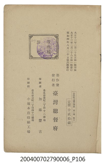 2004.007.0279 臺灣總督府編纂《公學校國語讀本》