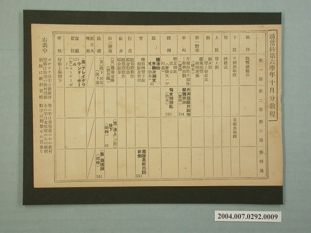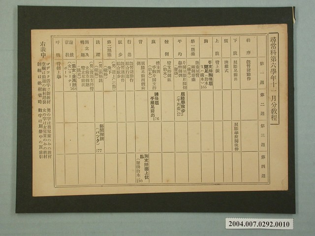 2004.007.0292 臺中師範尋常科第6學年月份教程表1組11張