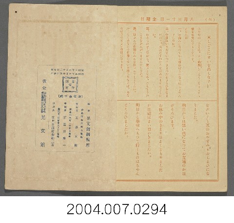 2004.007.0294.0001 公學校用《夏休みおさらひ》第3學年