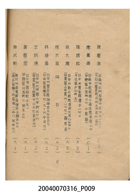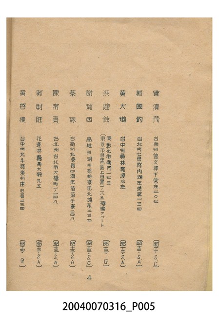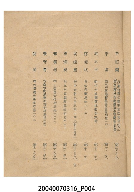 2004.007.0316 昭和15年度農台會名簿