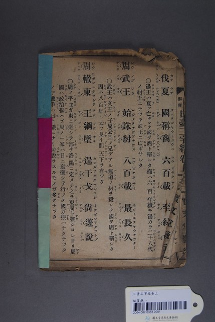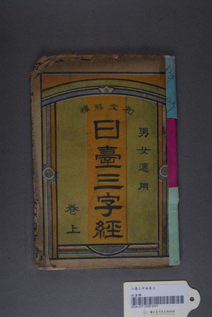 本文物為三字經內文,右邊為日語訓讀(即使用漢字之日本固有同義語彙的讀音),而非「音讀」。經文左側為日文注釋。(本文物無封底)