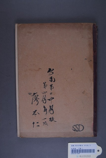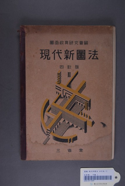 本文物為圖畫教育研究會編《現代新圖法》四訂版,著作者:圖畫教育研究會,代表者我妻榮吉。發行者:株式會社三省堂,代表人龜井寅雄。印刷者株式會社三省堂蒲田工場,代表人龜井豐治。發行所株式會社三省堂與株式會社三省堂大阪支店。本文物署名「台南第二中學校第四學年一組廖本仁」。