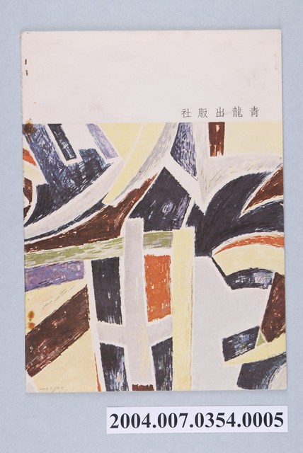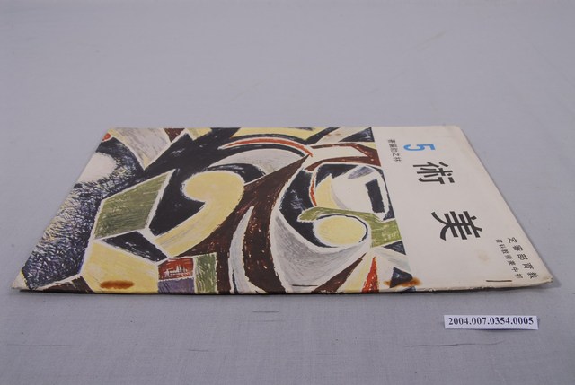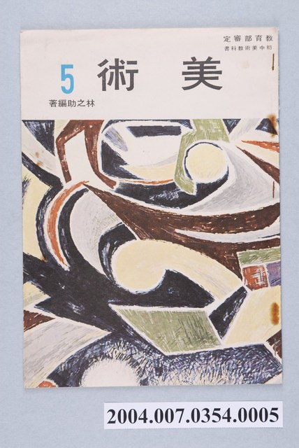 1.本文物為教育部審定初中美術教科書《美術》5,編著者及發行者為林之助,印刷者為興臺彩色印刷有限公司,出版社為青龍出版社,民國54年8月發行初版。封面與封底為展開相同圖案,彩色印刷,圖案以抽象構圖,手繪筆畫與互補的色彩為其作品風格,保留圖繪時的短筆觸,有寫生的意味,但是卻又是一幅抽象作品,色彩鮮豔大膽,依據作品風格應為林之助先生所繪,封底上方有青龍出版社。2.林之助出生於大正6年(1917),臺中大雅人。大正13年(1924)進入大雅公學校後展現對於圖畫、設計濃厚興趣,昭和9年(1934),考取日本帝國美術學校日本畫科(今武藏野美術大學)。林氏在民國50年(1961),成立「青龍出版社」,以編輯國小專用的美術課本為主。當時林之助除了在師範學院教學外,也在師範附設小學教授兒童畫,除了小學美術課本外,在民國67年(1978)也開始編輯初中美術教科書。
