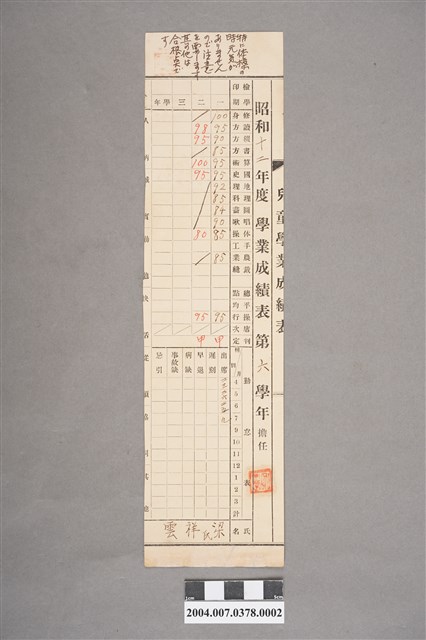 2004.007.0378.0002 梁祥雲昭和12年度第6學年學業成績表