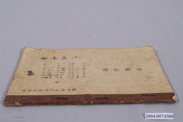 1.本文物為臺中州立臺中商業學校《生徒必携》姓名為林坤南,封面記載第一學年一組15席(一年一班十五號)、第2學年乙組9席、第3學年乙組9席、第4學年甲組7席、第5學年丙組13席,《生徒必携》即是現在的學生手冊,上面記載學校規定與遵守事項。2.臺中商業學校為現今「國立臺中科技大學」,大正8年(1919)創校稱「臺灣公立臺中商業學校」,大正10年(1921)改名「臺中州立臺中商業學校」,民國34年(1945)改名為「臺灣省立臺中商業職業學校」,後與臺灣省立臺中補習學校合併,並於民國100年(2011)改名為