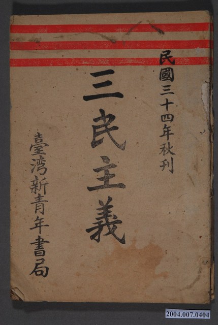 2004.007.0404 臺灣新青年書局出版《三民主義》