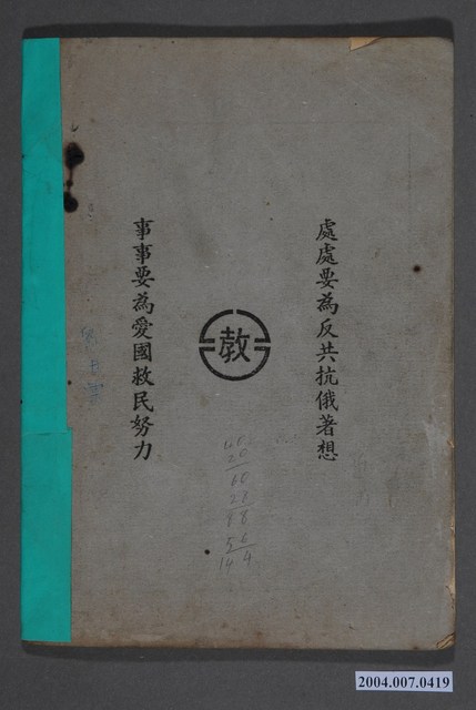 本文物為《高等小學 歷史》第三冊,乃教育部審定通過之第三次修訂版本;由國立編譯館編定。正面有「臺北縣三峽鎮成福國民學校」印,有「No.34」字跡編號。背面有教育部標籤,印有「處處要為反共抗俄著想」、「事事要為愛國救民努力」口號標語。
