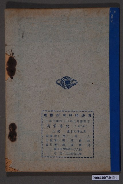 2004.007.0434 胡憲人編《初級職業學校商業簿記》上冊