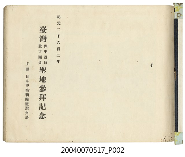2004.007.0517 臺灣保甲壯丁團2602年聖地參拜紀念冊