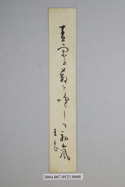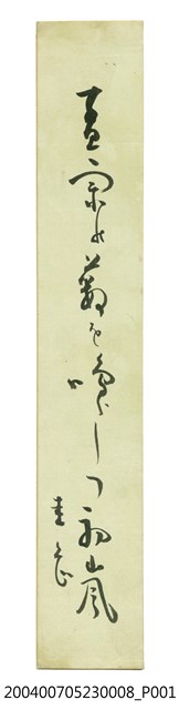 本件原為戴文忠先生所藏日治時期的名家詩集《黃落葉》,為多人撰寫編輯成冊之詩集,內文形式屬於日本文學:韻文,包含詩、和歌、連歌、俳句、川柳、歌謠以及漢詩等形式。以日文撰寫,本收藏共計53件。日本文學到了明治時期,自古代傳承下來的詩歌,有和歌、漢詩、歌謠、連歌、俳諧、狂歌、川柳等類別,明治維新之後,漢詩、歌謠、連歌、俳諧、狂歌、川柳等漸被疏遠,詩壇上只盛行和歌(短歌),俳句,和受到西洋詩的影響而產生的近代詩。本件為其第8件。