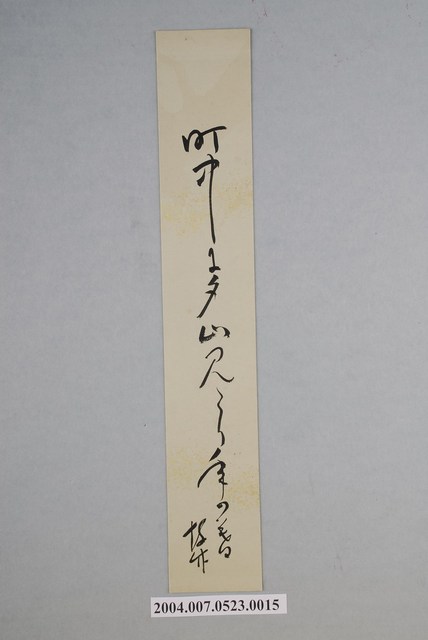 本件為日治時期名家詩集《黃落葉》詩集卡第15張,為多人撰寫編輯成冊之詩集,內文形式屬於日本文學中的韻文,以日文撰寫。《黃落葉》共收藏53張,此為第15張。日本韻文包含詩、和歌、連歌、俳句、川柳、歌謠以及漢詩等形式。日本文學到了明治時期,自古代傳承下來的詩歌,有和歌、漢詩、歌謠、連歌、俳諧、狂歌、川柳等類別,明治維新之後,漢詩、歌謠、連歌、俳諧、狂歌、川柳等漸被疏遠,詩壇上只盛行和歌(短歌)、俳句和受到西洋詩的影響而產生的近代詩。