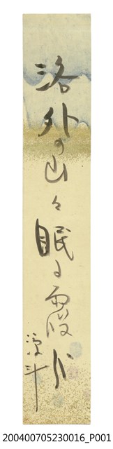 本件為日治時期名家詩集《黃落葉》詩集卡第16張,為多人撰寫編輯成冊之詩集,內文形式屬於日本文學中的韻文,以日文撰寫。《黃落葉》共收藏53張,此為第16張。日本韻文包含詩、和歌、連歌、俳句、川柳、歌謠以及漢詩等形式。日本文學到了明治時期,自古代傳承下來的詩歌,有和歌、漢詩、歌謠、連歌、俳諧、狂歌、川柳等類別,明治維新之後,漢詩、歌謠、連歌、俳諧、狂歌、川柳等漸被疏遠,詩壇上只盛行和歌(短歌)、俳句和受到西洋詩的影響而產生的近代詩。