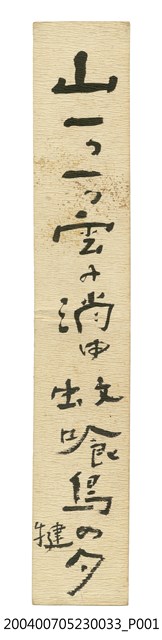 1. 本件為其第33件。本物件紙張有汙漬。2. 本件原為戴文忠先生所藏日治時期的名家詩集《黃落葉》,為多人撰寫編輯成冊之詩集,內文形式屬於日本文學:韻文,以日文撰寫,本收藏共計53件。日本文學-韻文包含詩、和歌、連歌、俳句、川柳、歌謠以及漢詩等形式。日本文學到了明治時期,自古代傳承下來的詩歌,有和歌、漢詩、歌謠、連歌、俳諧、狂歌、川柳等類別,明治維新之後,漢詩、歌謠、連歌、俳諧、狂歌、川柳等漸被疏遠,詩壇上只盛行和歌(短歌),俳句,和受到西洋詩的影響而產生的近代詩。