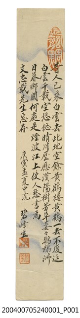 本件原為戴文忠先生所藏日治時期的名家詩集《春陽集》,為多人撰寫編輯成冊之詩集,內文形式屬於日本文學:韻文,以日文撰寫,本收藏共計48件。日本文學-韻文包含詩、和歌、連歌、俳句、川柳、歌謠以及漢詩等形式。日本文學到了明治時期,自古代傳承下來的詩歌,有和歌、漢詩、歌謠、連歌、俳諧、狂歌、川柳等類別,明治維新之後,漢詩、歌謠、連歌、俳諧、狂歌、川柳等漸被疏遠,詩壇上只盛行和歌(短歌),俳句,和受到西洋詩的影響而產生的近代詩。本件為其第1件。