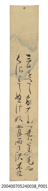 1. 本件為其第38件。本物件所寫之紙張有金箔,紙張狀態有些許褐斑,邊角有摺痕。2. 本件原為戴文忠先生所藏日治時期的名家詩集《春陽集》,為多人撰寫編輯成冊之詩集,內文形式屬於日本文學:韻文,以日文撰寫,本收藏共計48件。日本文學-韻文包含詩、和歌、連歌、俳句、川柳、歌謠以及漢詩等形式。日本文學到了明治時期,自古代傳承下來的詩歌,有和歌、漢詩、歌謠、連歌、俳諧、狂歌、川柳等類別,明治維新之後,漢詩、歌謠、連歌、俳諧、狂歌、川柳等漸被疏遠,詩壇上只盛行和歌(短歌),俳句,和受到西洋詩的影響而產生的近代詩。