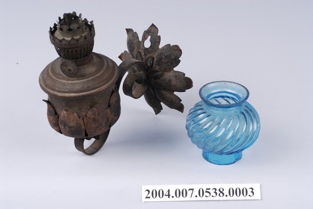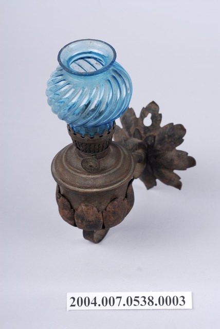2004.007.0538.0003 藍色玻璃花盞壁燈