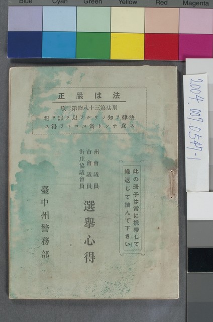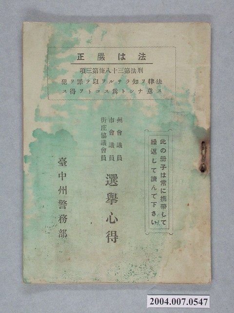 2004.007.0547 臺中州警務部發行《台中州會、市、街庄協議會員選舉心得》