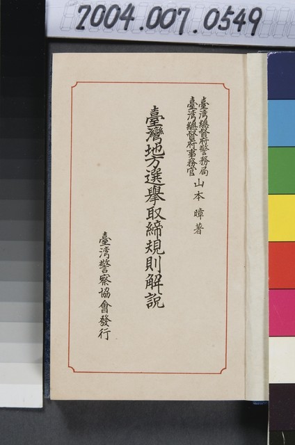 2004.007.0549 山本暲著臺灣警察協會發行《臺灣地方選舉取締規則解說》