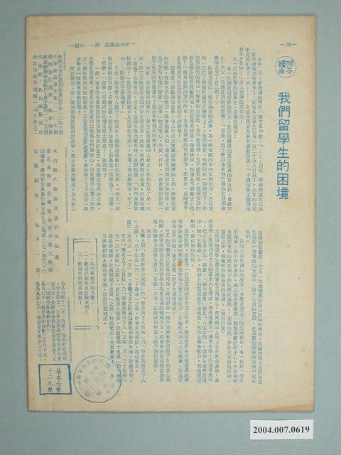 王天濱,2002。臺灣新聞傳播史。臺北:亞太圖書出版社。陳俊斌,2007。雜誌創刊風景:雜誌中的臺灣史,全國新書資訊月刊,105,頁:23-29,國家圖書館。