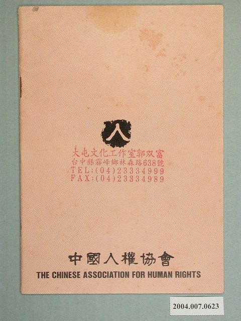 此物件為書籍〈「美麗島叛亂事件」事實經過〉,編印單位為中國人權協會。 中國人權協會成立於1979年,創立者為曾任亞洲反共聯盟秘書長、東海大學董事長的中國國民黨籍人士杭立武。1979年,美國由民主黨的吉米•卡特總統主政,其在外交政策上表現出對於人權的關注,在冷戰形勢下為資本主義陣營帶來探討人權、正義議題的言論空間,對此臺灣國內的長老教會發出「人權宣言」加以呼應,黨外勢力也以人權為口號投入選舉。對此中國國民黨也創建「中國人權協會」,呼應卡特總統的人權價值政策,並與美麗島雜誌社就人權議題的詮釋權力形成競爭關係。 1979年,美麗島雜誌社計畫於該年度的12月10日舉辦「世界人權日」紀念活動,但其活動申請屢遭駁回,未如「中國人權協會」順利。然而活動雖未經批准,美麗島雜誌社仍在「世界人權日」當天如期舉行紀念活動。活動前夕,警政機關在高雄地區反常地縮緊管制,世界人權日當日的演講、遊行活動,在鎮暴部隊的緊密包圍下,演變為群眾衝突。此次事件又稱「高雄事件」,當時的媒體輿論稱之為預謀叛亂,警政單位針對美麗島雜誌社人員展開大規模逮捕,並於翌年將之送交軍法審判,是為「美麗島大審」。此次審判,不僅對國民黨當局帶來偌大的國際壓力,也在臺灣社會內部打開了關於民主、人權議題的討論空間。
