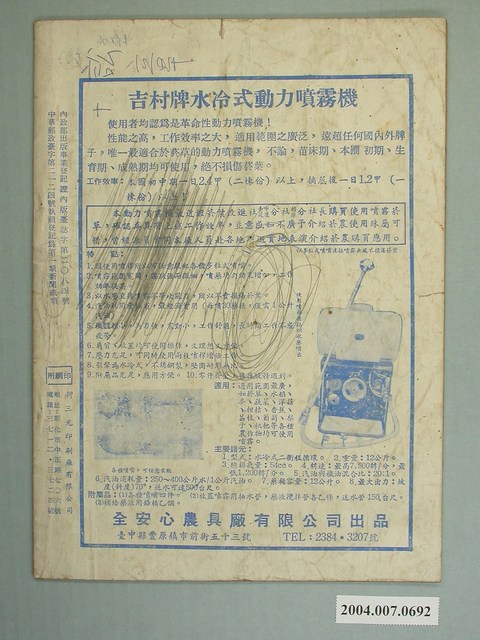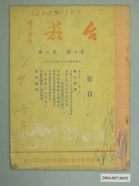 2004.007.0692 臺灣省菸葉耕種事業改進社發行《臺菸》第7卷第8期