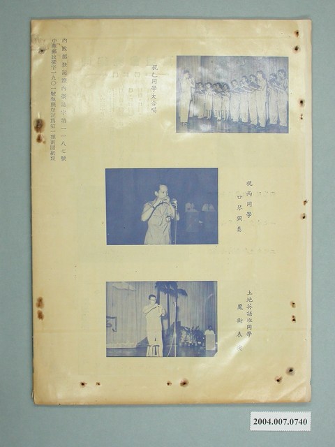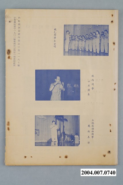 此為一紙質雜誌,此書為臺灣訓練團於1965年(民國54年)11月1日出版的《訓練通訊》雜誌第54號。 《訓練通訊》為臺灣省訓練團訓練通訊社所發行之刊物,創刊於1956年,以月刊形式發行,1993年起更名為《人力發展》。《訓練通訊》以臺灣省訓練團的內部通訊為主軸,內容多為公務員組織訓練及相關制度規章之探討。 此物件的出版方「臺灣省訓練團」的前身為「臺灣省地方行政幹部訓練團」,成立於1956年,是臺灣省行政長官公署的培訓機關,負責辦理地方行政幹部的職前訓練。此機構之名稱,隨著臺灣省政府在中華民國中央政府中的層級調整而時有更易。1999年,此機構改隸行政院人事行政局,目前為「行政院人事行政總處公務人力發展學院」。
