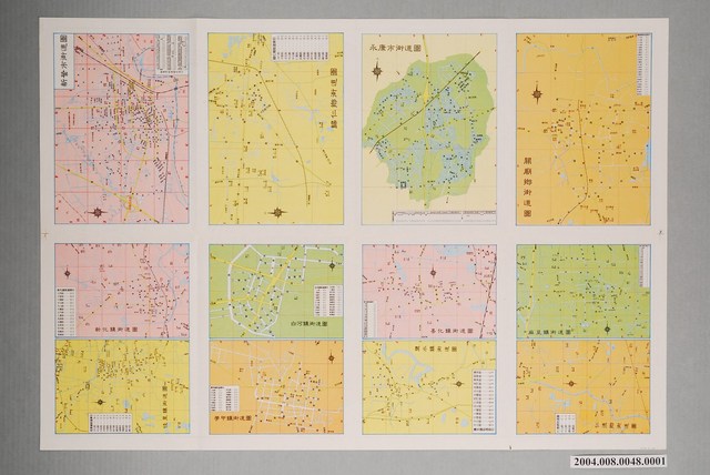 正面〈臺南縣地圖〉,繪製範圍為臺南縣各鄉鎮,功能分類屬行政區域圖,各鄉鎮分別套色。內容包含行政界線(縣市界、鄉鎮界,正面仍稱永康鄉)、行政治所(縣治、鄉鎮治)、鐵路、公路與高速高路(附編號、交流道)、名勝古蹟等,無地形描繪。有經緯網格,地圖方向指北。附圖為新營市街圖圖。背面為新營市、永康市、新化、麻豆等地市街圖。