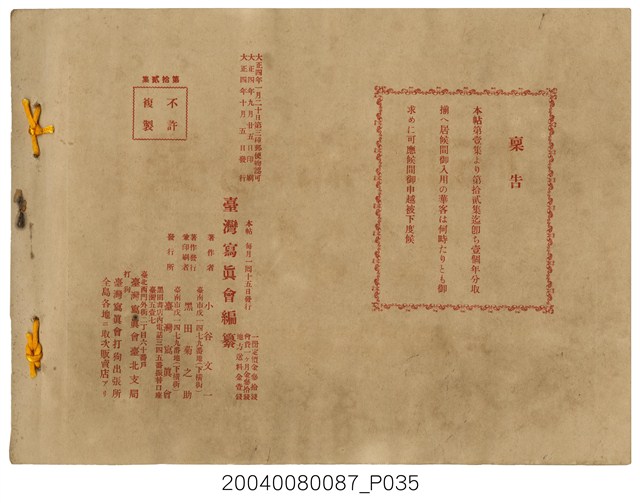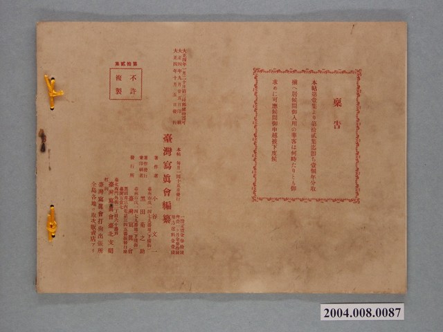 2004.008.0087 大正4年發行《臺灣寫真帖》第拾貳集