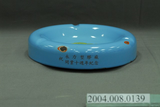 2004.008.0139 永力塑膠廠開業10週年紀念藍色搪瓷菸灰缸