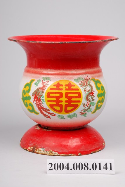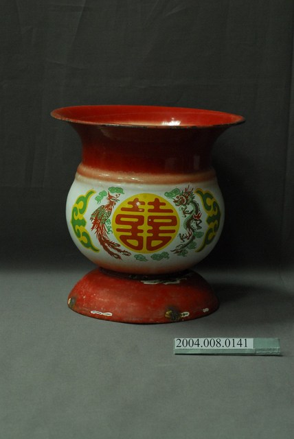 2004.008.0141 搪瓷紅色雙喜痰盂