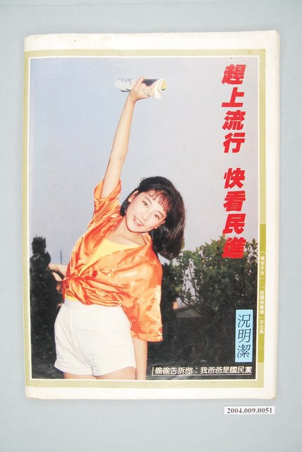 此為民進雜誌社1987年5月7日出版的《民進》週刊第12號,內容計有〈老兵入新黨〉(蘇瑞)、〈最具反抗色彩的民間藝人廖添丁的「影武者」-吳樂天縱橫談〉(艾翠)、〈失去冠軍的錢復--外交部「永遠的老二」〉(張逸塵)、〈「無法」「無空」聯手作法-王兆釧繼承施性忠衣鉢〉(老和尚)、〈領航者要上街頭更要到角落-從四一九看五二四〉(劉鳴生)、〈大學之道在「上道」-不上道的台灣大學教育〉、〈四一〇鹽埕事件錄影帶的見證〉(余種懷)、〈有牙無齒-五四全國牙醫界抗議現場報導〉(林靜英)、〈誰是台灣之「母」〉(張無派)、〈十二個老師.一種心情-「民進週刊」的理想與實踐〉(吳祥輝)、〈王惕吾吃官司-吃人的兩大報廣告 〉(林沖)等。 《民進周刊》為1987年2月19日創刊的黨外雜誌,創辦人為吳祥輝。此刊物曾陸續以《民進時代》、《民進廣場》、《民進天地》、《民進世界》等名稱出版,最終在1990年8月20日停刊。此刊物標榜「不是機關報」、「人民第一、民進黨第二」,另《民進周刊》雖然在政治立場與民進黨親近,但並非民進黨的附隨雜誌 「黨外」一詞主要為非中國國民黨的臺灣政治勢力,而「黨外」政治勢力,主要的宣傳方式為「黨外雜誌」,「黨外雜誌」最早如1950年代的《自由中國》、1970年代的《大學》、《臺灣政論》,後在1980年代「黨外雜誌」發展蓬勃,代表刊物為《八十年代》與《美麗島》,最終,這股媒體趨勢在1986年民進黨成立、1987年解除戒嚴之後逐漸式微。「黨外雜誌」在當時激起了臺灣民眾的民主意識,也逐步促成了言論自由開放。(蕭淑玲,2006,153-155)。