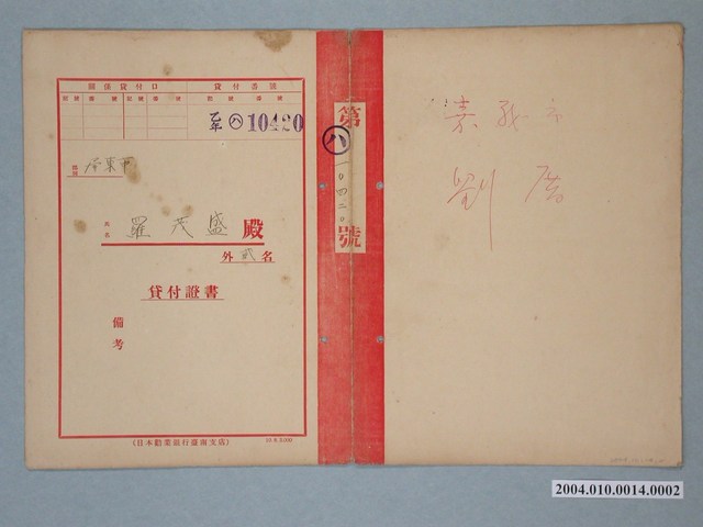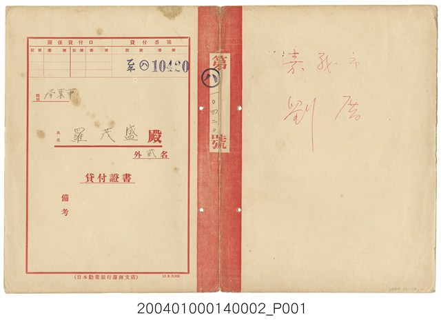 2004.010.0014.0002 日本勸業銀行貸款證書羅茂盛第10420號