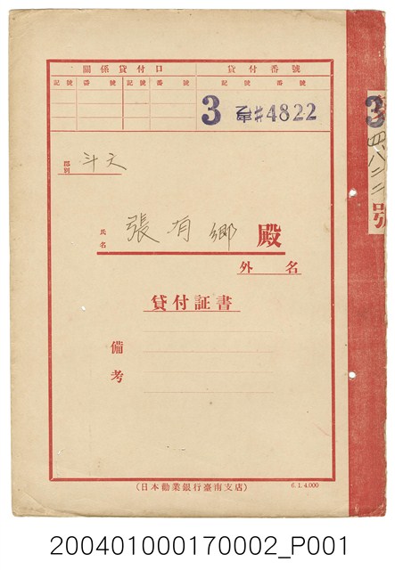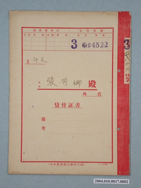 2004.010.0017.0002 日本勸業銀行貸款證書張有鄉第34822號