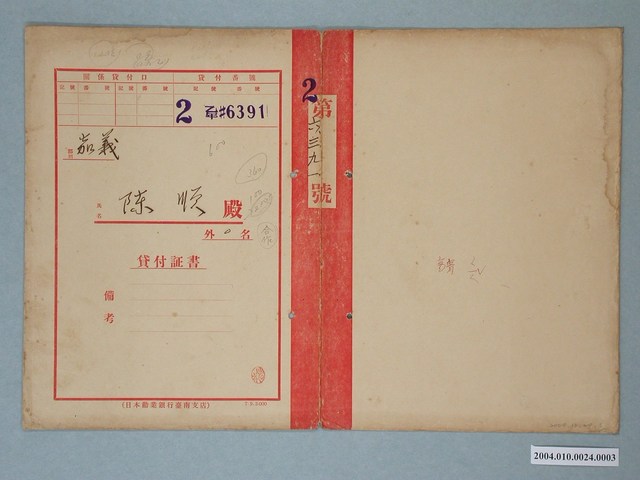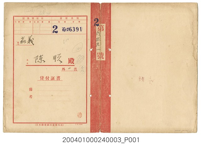 2004.010.0024.0003 日本勸業銀行貸款證書陳順第26391號