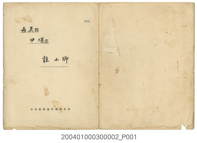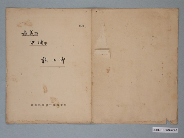 2004.010.0030 地籍圖謄本〈六千分一龍山腳圖〉與日本勸業銀行貸款證書