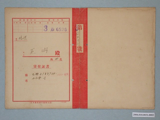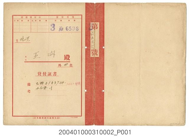 2004.010.0031.0002 日本勸業銀行貸款證書王湖第36596號