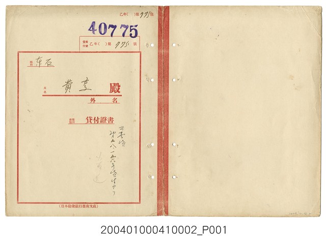 2004.010.0041.0002 日本勸業銀行貸款證書黃享第40775號