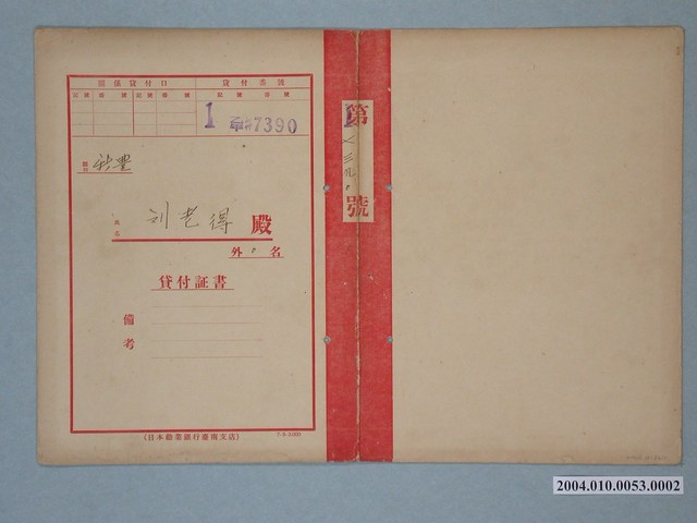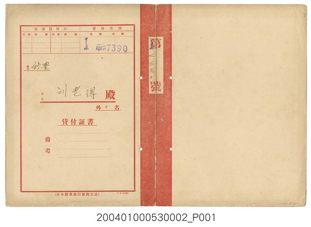 2004.010.0053.0002 日本勸業銀行貸款證書劉老得第17390號