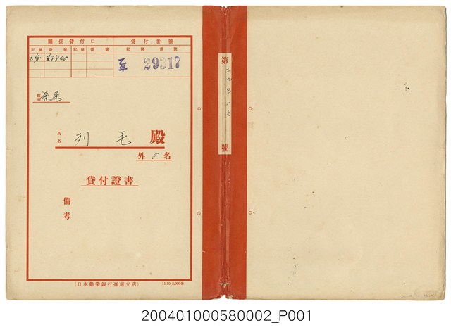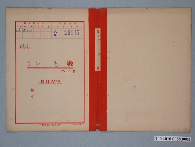 2004.010.0058.0002 日本勸業銀行貸款證書劉毛第29317號