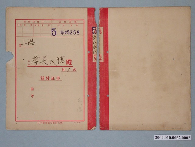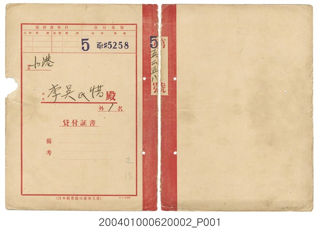 2004.010.0062.0002 日本勸業銀行貸款證書李吳氏惜第55258號