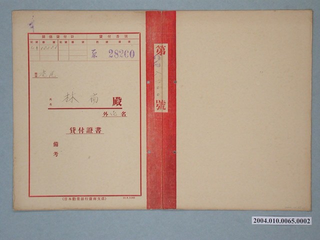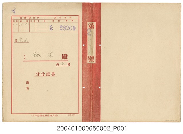 2004.010.0065.0002 日本勸業銀行貸款證書林扁第28200號