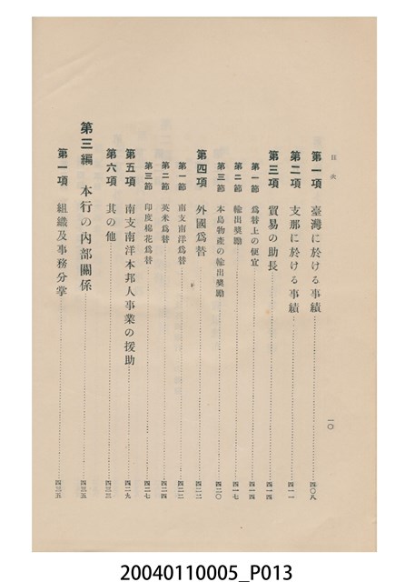 2.臺灣銀行,臺灣銀行成立於明治32年(1899),前身為株式會社臺灣銀行,日本帝國議會於明治30年(1897)時頒布法律第三十八號,通過之「臺灣銀行法」,展示了日本欲開拓臺灣資源、拓展於亞洲的版圖與經濟利益、整頓臺灣紊亂的貨幣制度等企圖,而臺灣銀行便是在此一背景下所成立。戰後,成為政府所設立的第一家銀行,其除一般商業銀行之業務外,更有代理中央銀行協辦的功能,具有不可或缺的重要性。