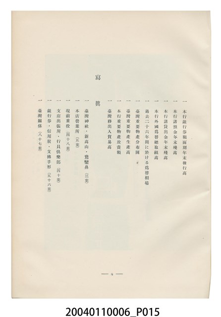 2.臺灣銀行,臺灣銀行成立於明治32年(1899),前身為株式會社臺灣銀行,日本帝國議會於明治30年(1897)時頒布法律第三十八號,通過之「臺灣銀行法」,展示了日本欲開拓臺灣資源、拓展於亞洲的版圖與經濟利益、整頓臺灣紊亂的貨幣制度等企圖,而臺灣銀行便是在此一背景下所成立。戰後,成為政府所設立的第一家銀行,其除一般商業銀行之業務外,更有代理中央銀行協辦的功能,具有不可或缺的重要性。