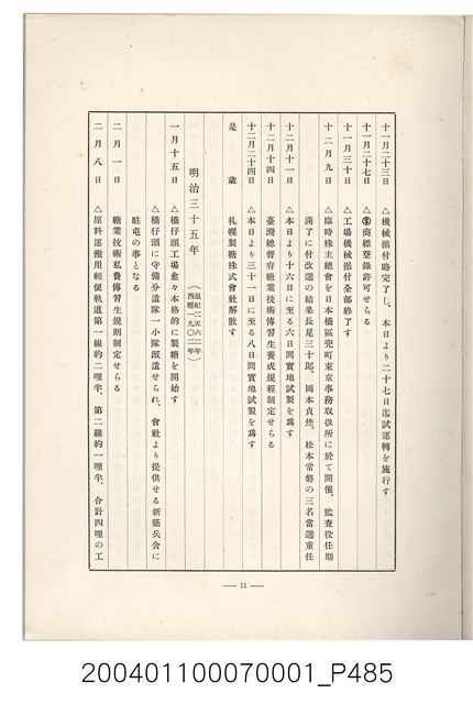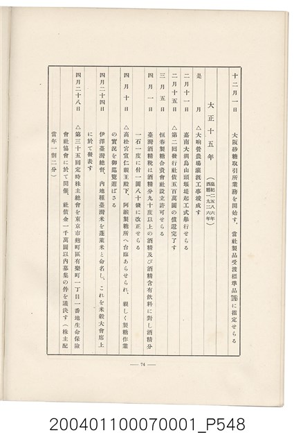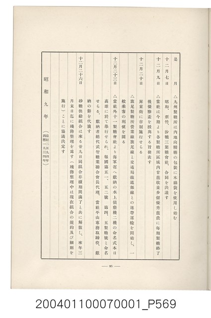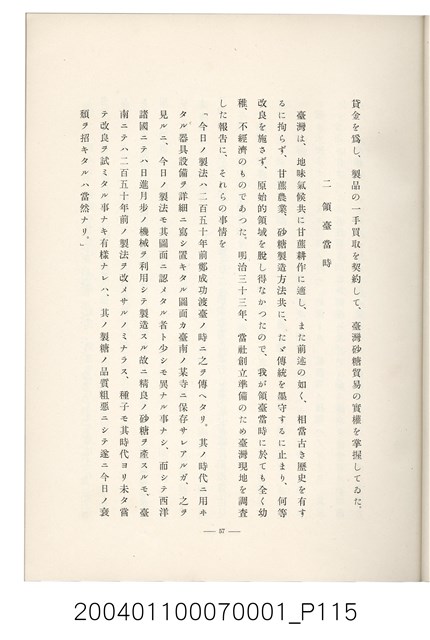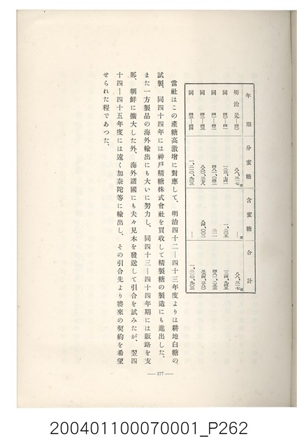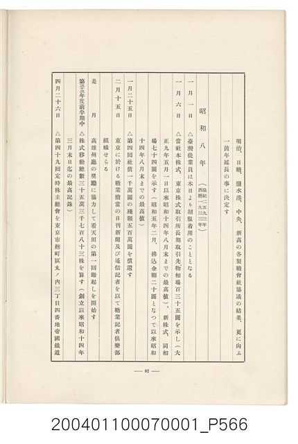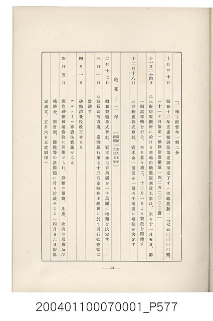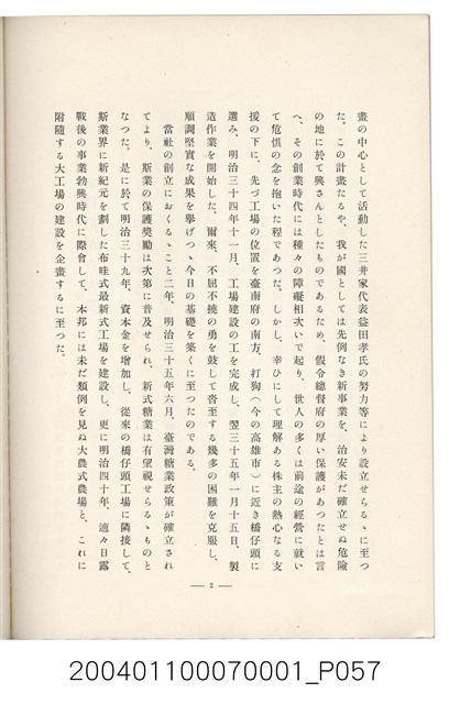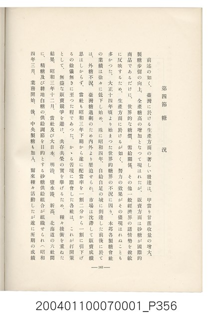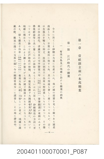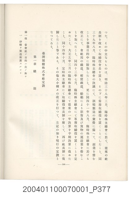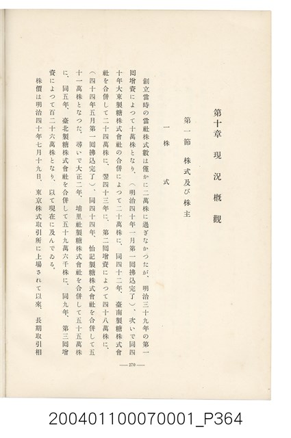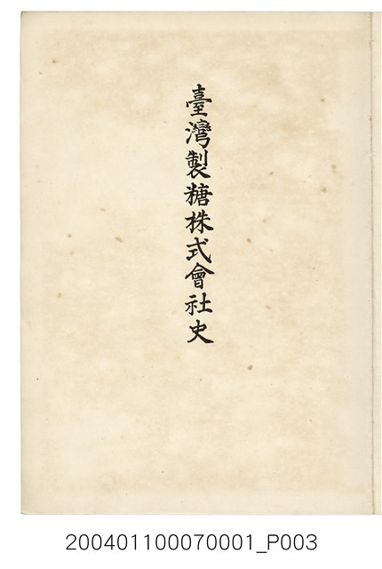本物件為臺灣製糖株式會社史書本,書皮為綠色,書皮與內頁保存良好,該書由伊藤重郎編輯,臺灣製糖株式會社於昭和14年9月30日發行。該書以臺灣製糖株式會社的成立背景、沿革、各時代發展、現況為主題。